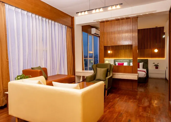 Este hotel de 4 estrellas se encuentra a 5 km del aeropuerto Internacional Tribhuvan de Katmandu y a unos 10 minutos en coche de atractivos culturales como el Estupa de Boudhanath. El Museo del palacio de Narayanhity está situado a 6 km de este hotel. Los lugares de compras cercanos incluyen la Plaza Durbar, que está a 15 minutos en coche. La estación de autobuses Hattigauda Chowk está a un corto paseo del Mhendo Hotel & Studio Suites.